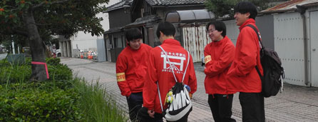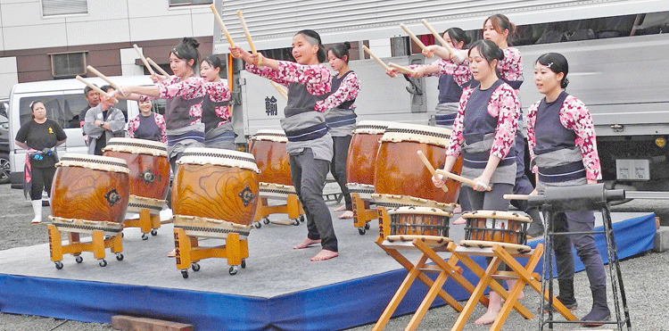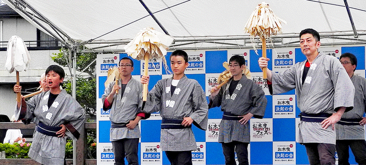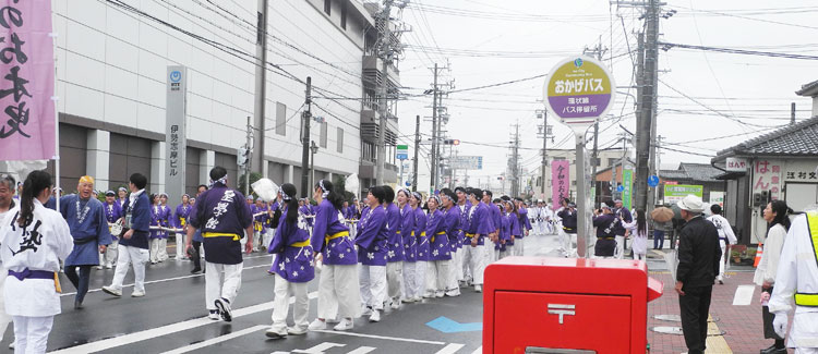 | 2025.05.17 お木曳き行事を盛り上げようと外宮北御門広場で開かれた「お木曳きフェス」各町の木遣り、太鼓の披露に雨の中でも会場は賑わいました。次を担う新星、、、力強く唄い上げます。 |