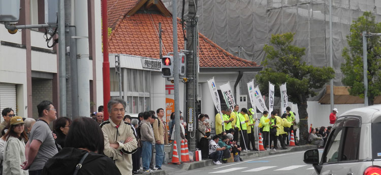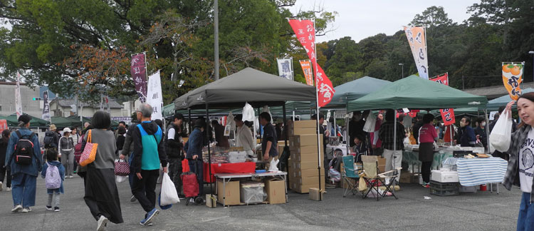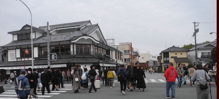 | 2025.11.02 外宮前では大学駅伝を応援する人達が通過予定時間より1時間以上まえから並びはじめております。 また伊勢楽市も開かれておりこちらも賑わっております。 |